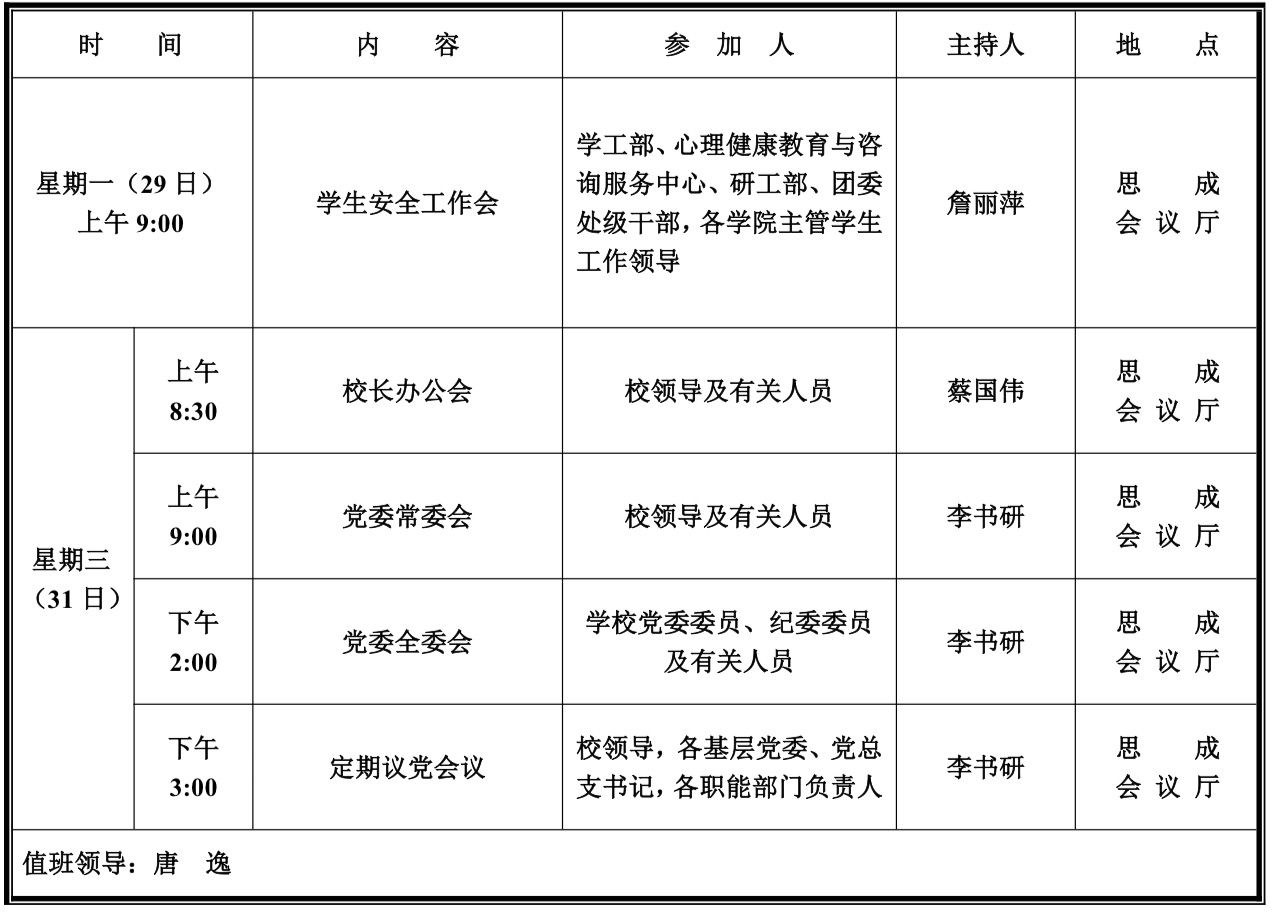 第十九周学校活动安排